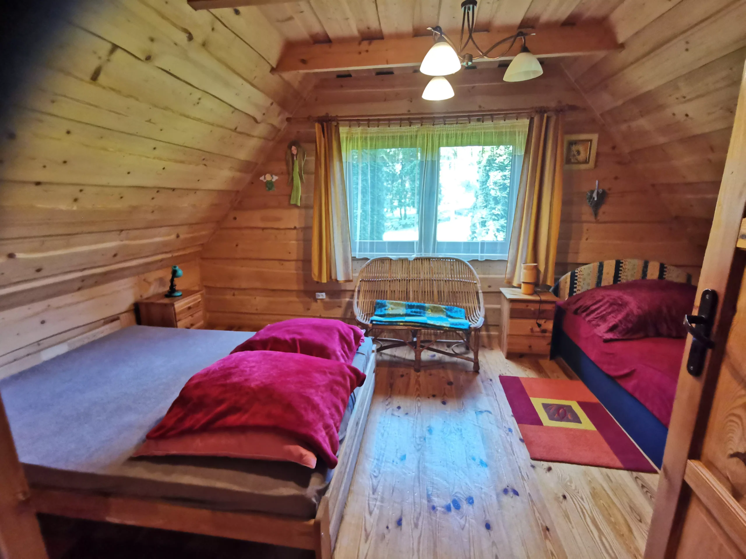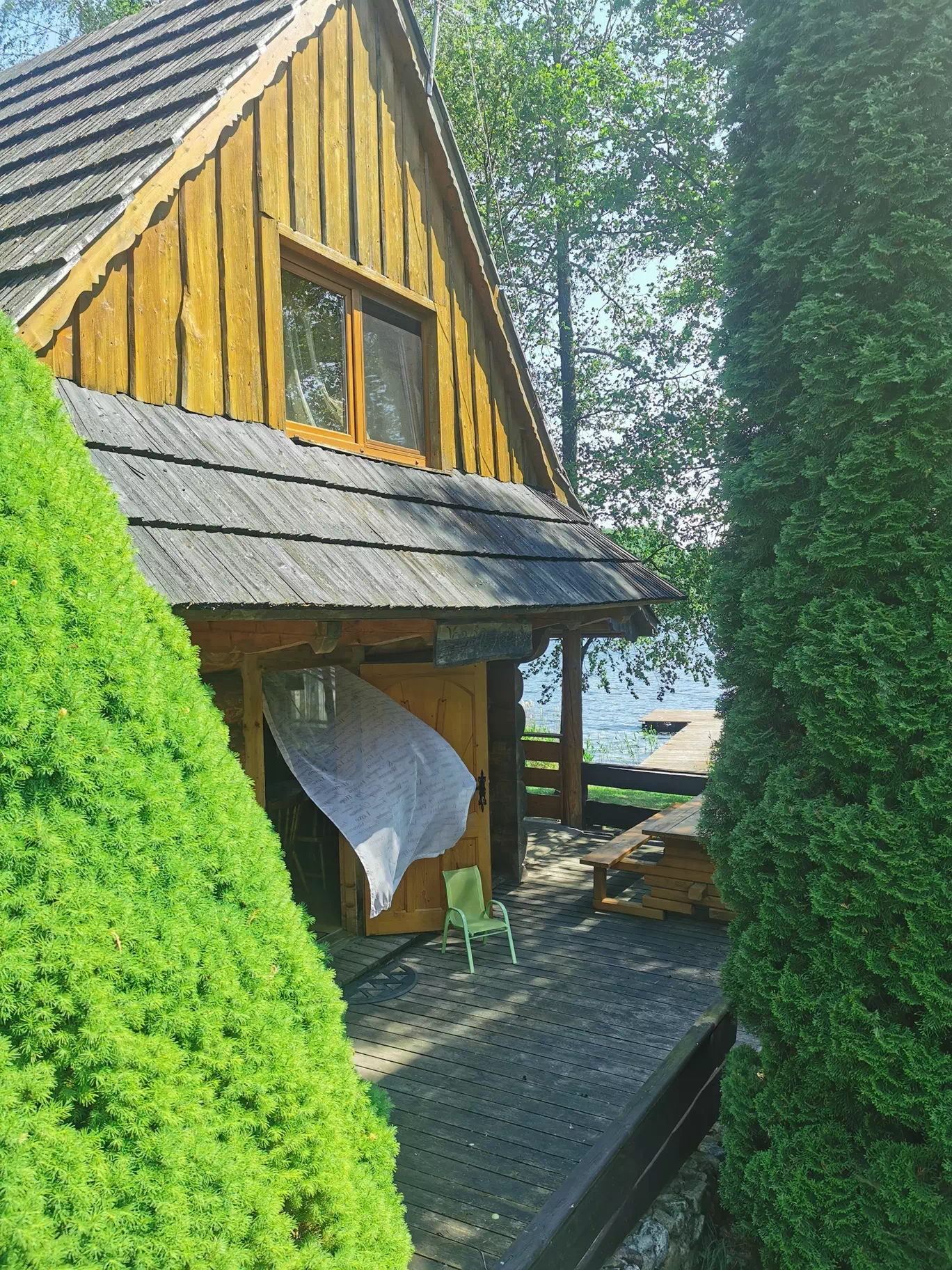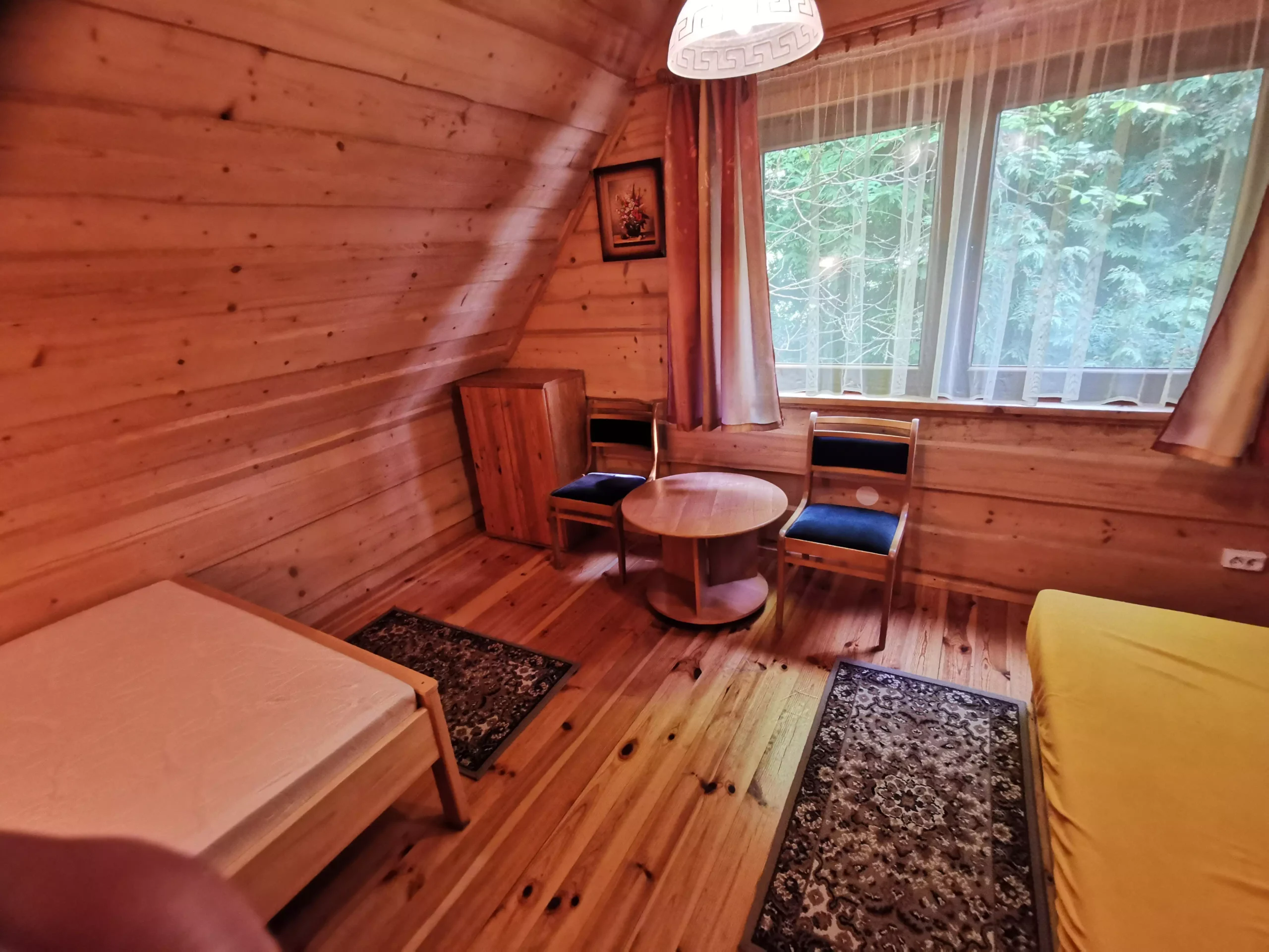Przytulny góralski rewniany domek z bala, który już od pierwszej chwili zachwyca swoim naturalnym, ciepłym charakterem i klimatem prawdziwego wypoczynku blisko natury. Położony jest w wyjątkowym miejscu — zaledwie 20 metrów od linii brzegowej jeziora, dzięki czemu widok na wodę i bliskość przyrody towarzyszą gościom przez cały pobyt.