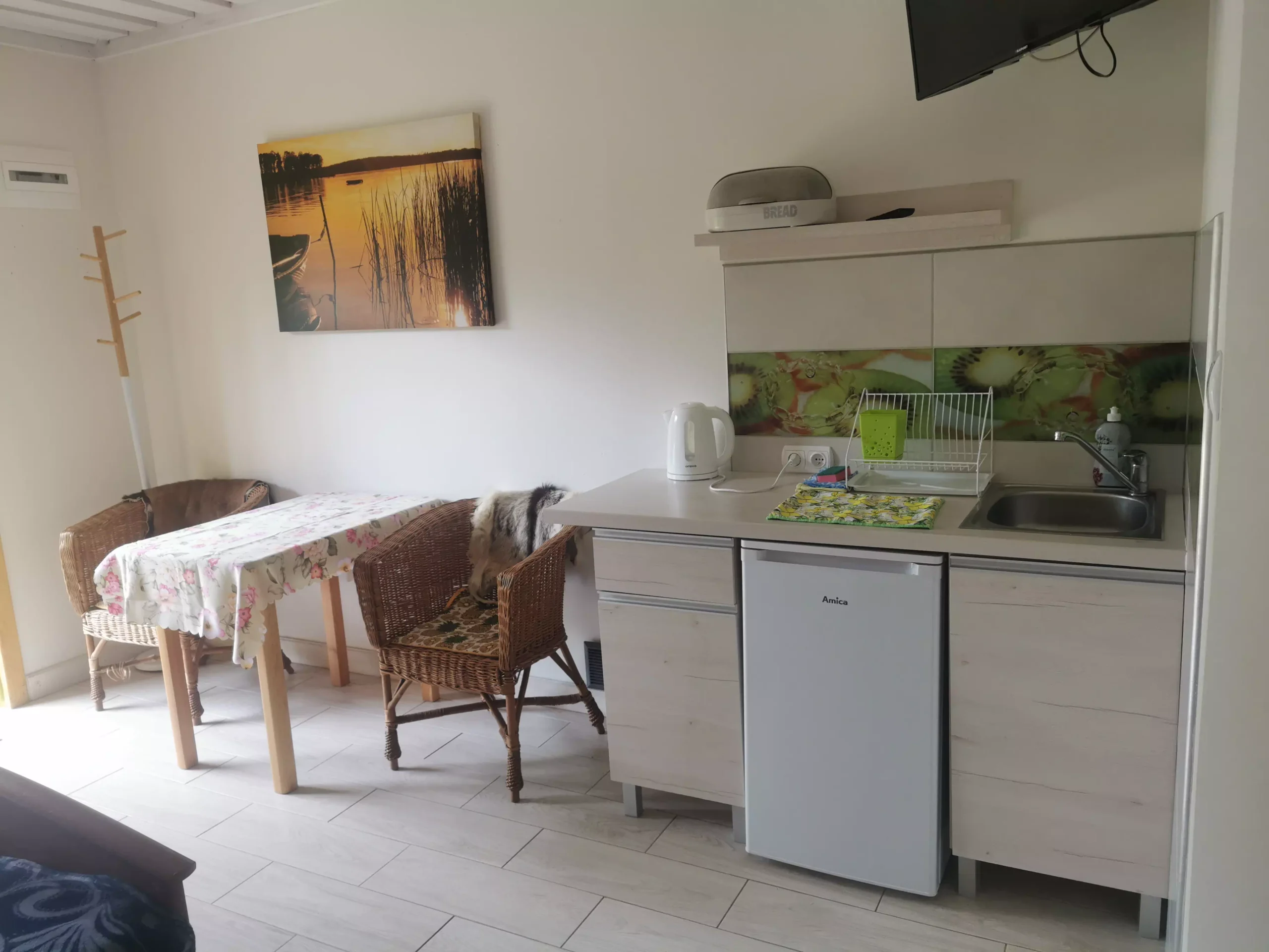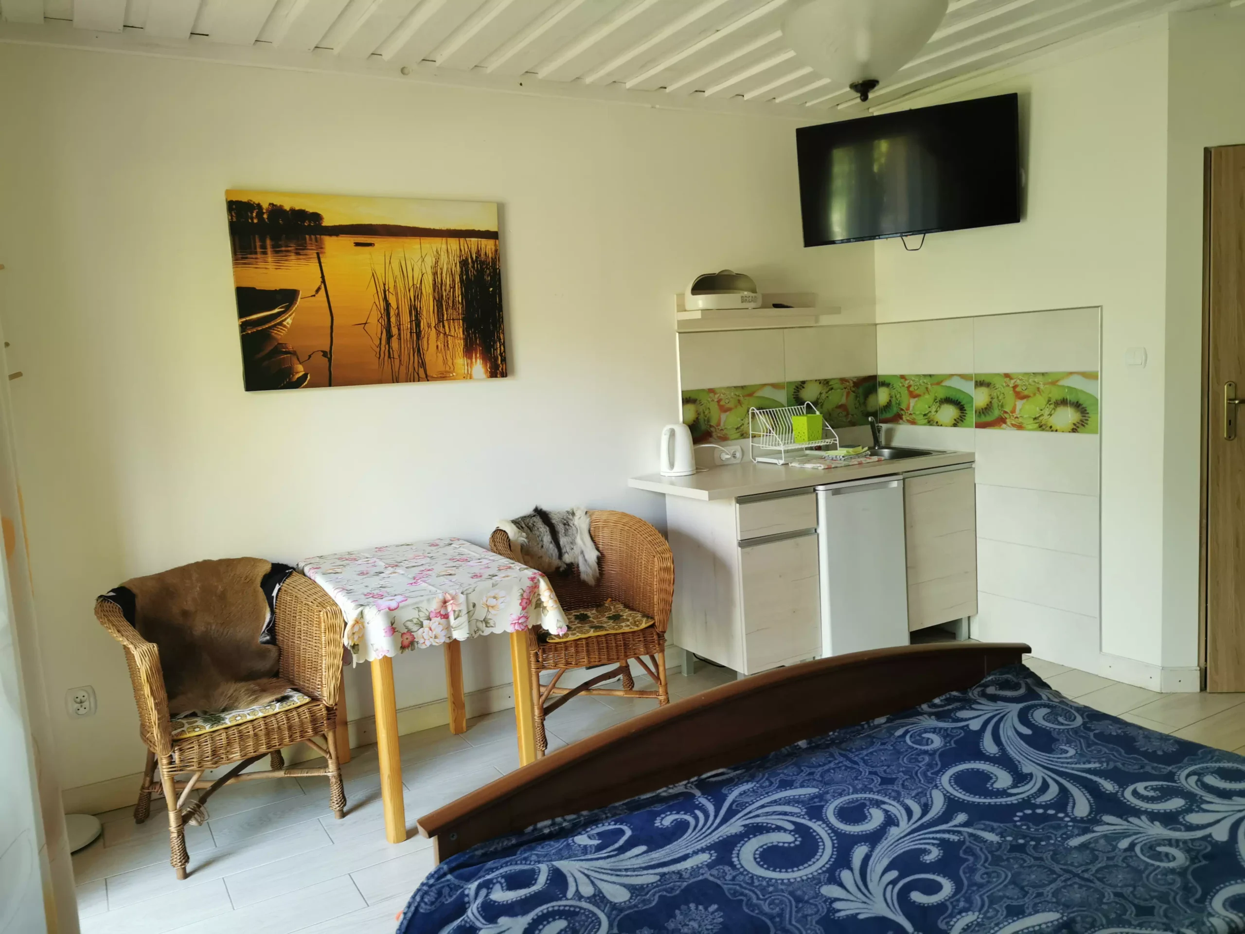 Wnętrza są przytulne i funkcjonalne, tworząc idealne warunki do odpoczynku po dniu spędzonym nad jeziorem, na spacerach czy wycieczkach. To wygodna opcja noclegu łącząca prywatność, domową atmosferę i komfort potrzebny do prawdziwego relaksu.