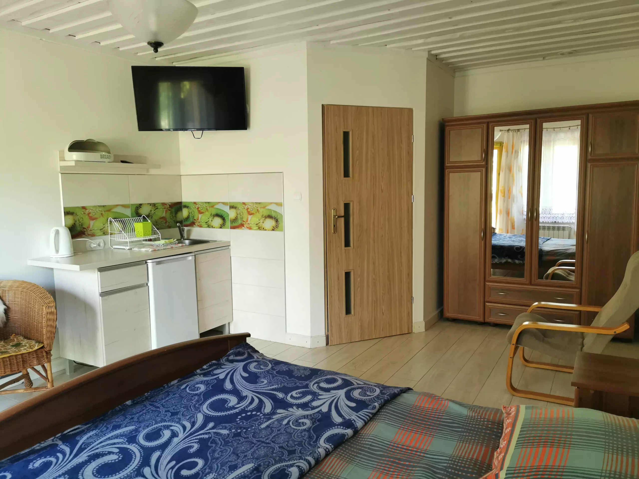 Dla osób ceniących komfortowy wypoczynek we dwoje oferujemy trzy przytulne pokoje dwuosobowe, które doskonale sprawdzą się dla par lub gości podróżujących we dwoje. Każdy pokój został przygotowany z myślą o wygodzie i niezależności — posiada własną łazienkę oraz mały, funkcjonalny aneks kuchenny, umożliwiający przygotowanie śniadania, kolacji czy ciepłych napojów o dowolnej porze.